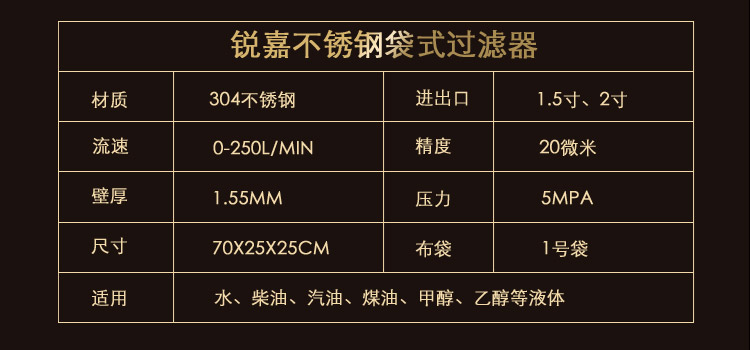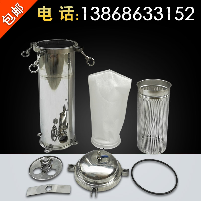 不銹鋼過(guò)濾器接口有1寸和1.5寸2種,布袋統(tǒng)一采用1號(hào)袋,如有特殊需求,可聯(lián)系我們定做13868633152。