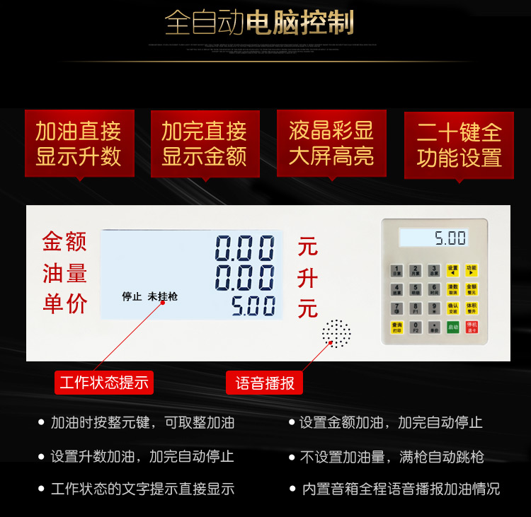 銳嘉IC卡加油機160K型是一款加油站防爆汽油雙槍插卡加油機,可加柴油和汽油,750W大功率,流量每分鐘可達60L-100L,加油機內部采用正星同款流量計和防爆組合泵裝置,安全更放心!